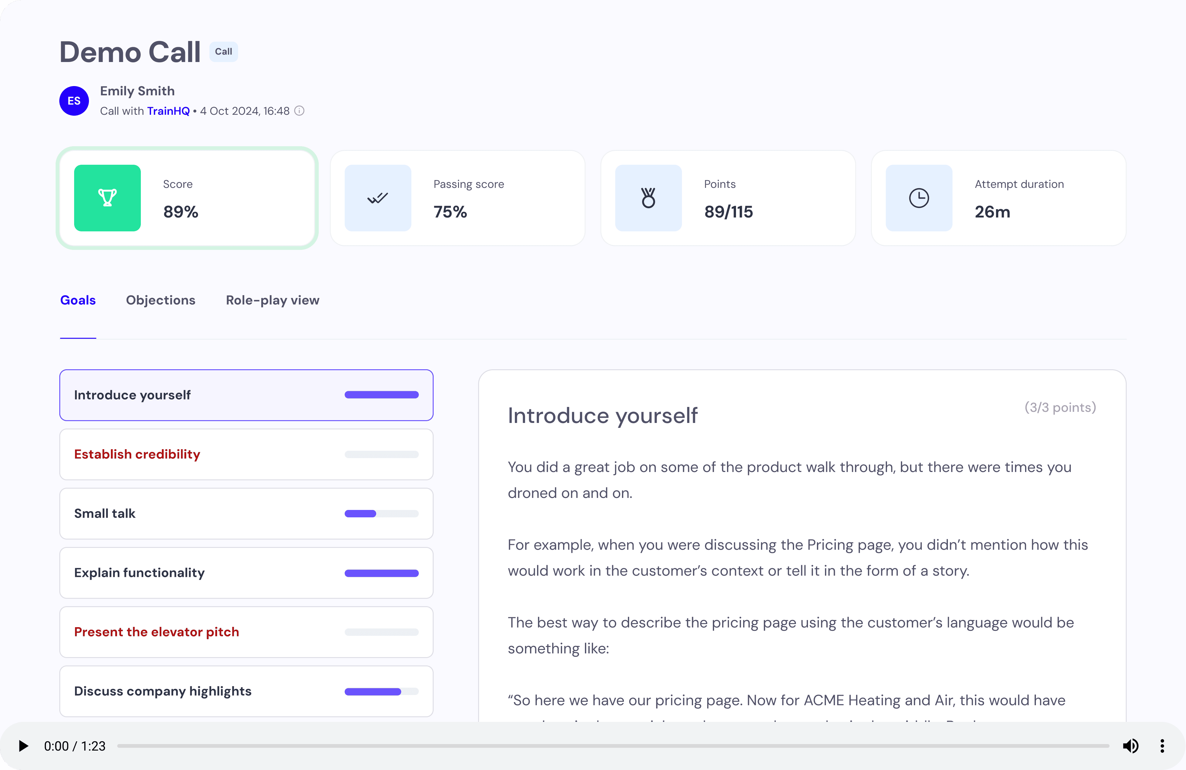 TrainHQ gives revenue teams the tools to practice, improve, and perform — whether you’re training new hires, fixing discovery, standardizing coaching, or trying to get consistent pipeline across regions.